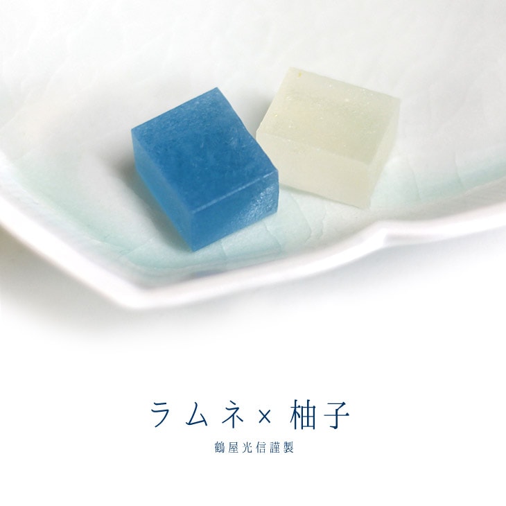 植物由来の寒天に、柚子のさわやかな甘みと昔懐かしい、ラムネ菓子の清涼感を味じ込め、炊き上げた琥珀糖です。