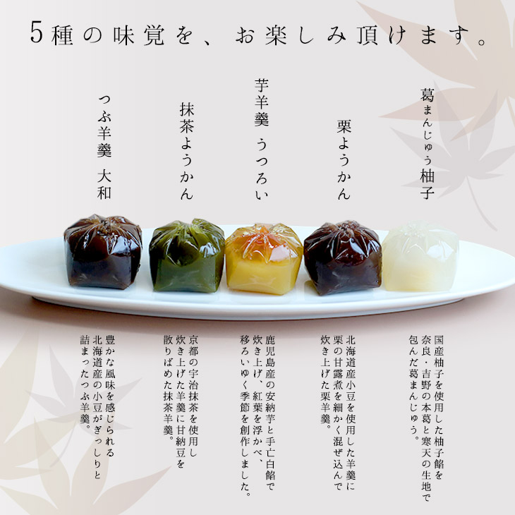 鹿児島県産の安納芋と手亡白餡で炊き上げ、紅葉を浮かべ、移ろいゆく季節を創作しました。